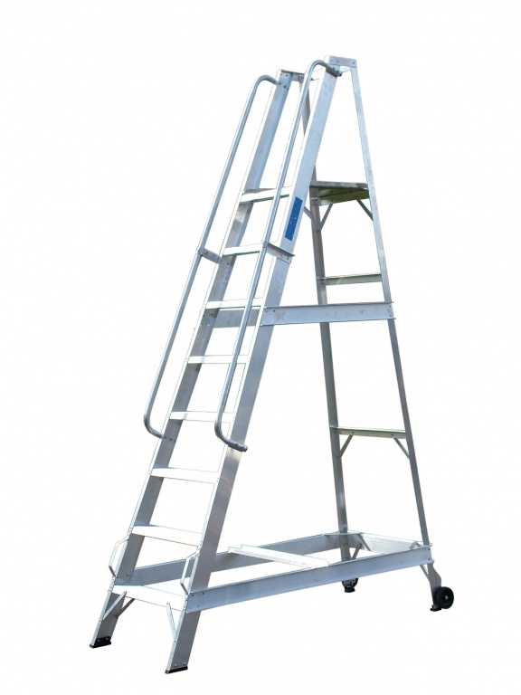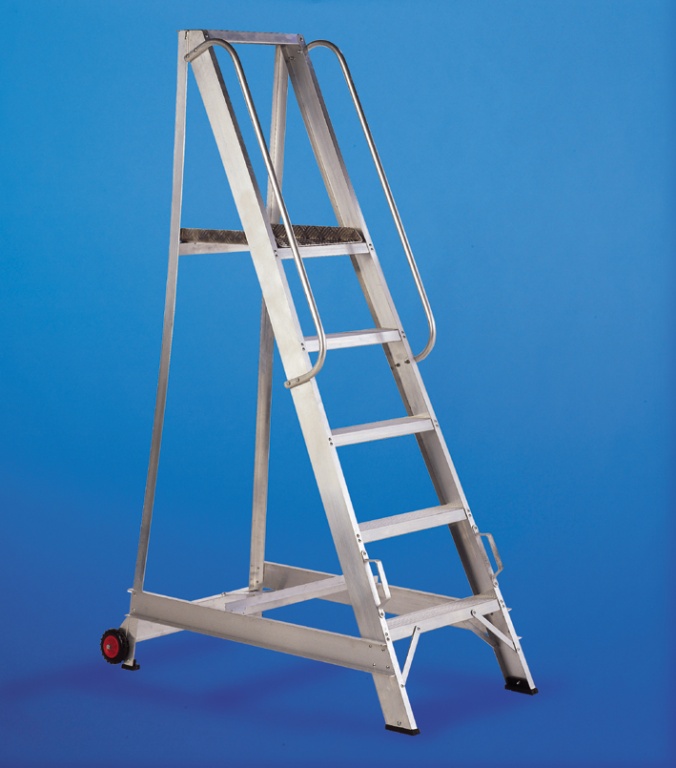 Manufactured in the UK, these industrial mobile warehouse steps have 80mm deep treads which are deeply serated to give a safe non slip surface. Each tread is double riveted for safety. Front and rear stays are fitted to the bottom tread for increased strength and rigidity. The bottom frame is cross braced and non slip rubber feet are fitted to both front and rear feet. The steps are fitted with rear wheels for easy manouevreability and incorporate a large 450mm x 360mm working platform.